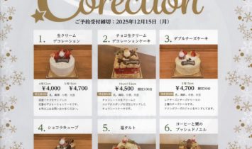 クリスマスケーキの予約を開始していますWebサイトでの掲載が遅くなってしまい申し訳ございません ご予約締め切りは12月15日です店頭でのご予約・前金での支払いが必要となります台数に限りがあり、期間終了を待たずに締め切りになる可能性もございます…